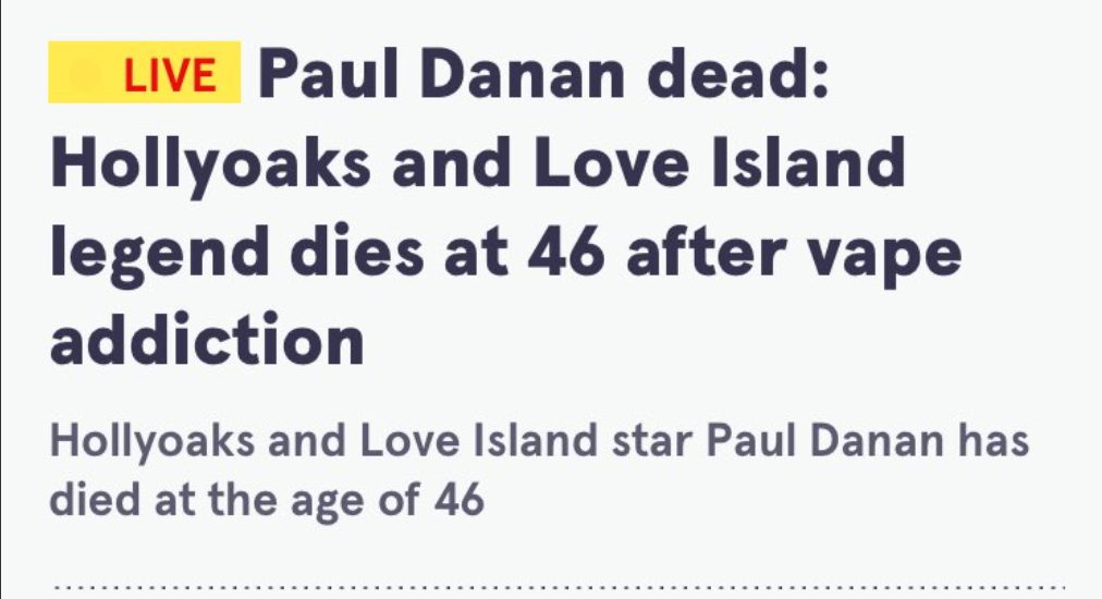 The Daily Mirror has extensively covered the death of former Hollyoaks and Celebrity Love Island star Paul Danan. Shortly after the actor passed, the Caroline Waterston-edited paper confidently revealed he’d died from a vaping habit.